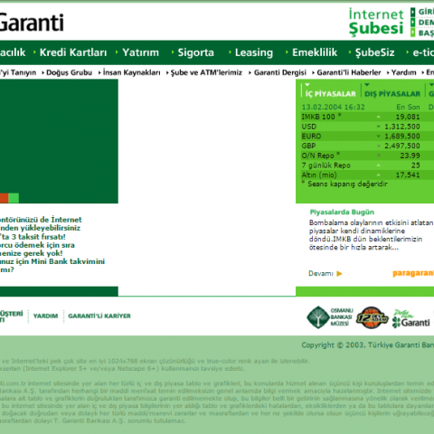 En İyi Bankacılık & Finans & Sigortacılık Sitesi1. Altın Örümcek Ödülleri 2002